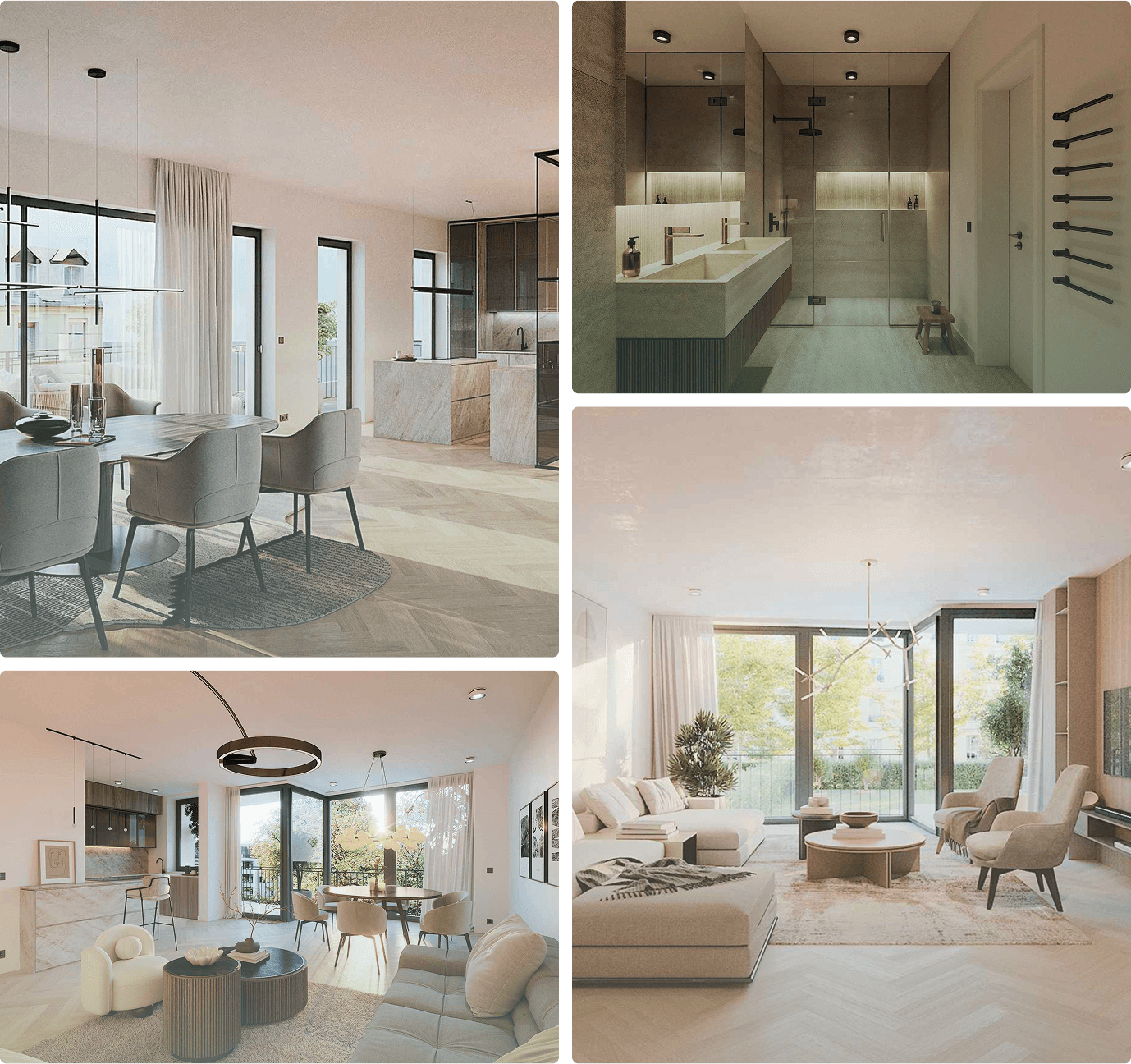 Modernste Materialien, luxuriöse Bäder und durchdachte Wohnkonzepte setzen neue Maßstäbe für exklusives Wohnen.