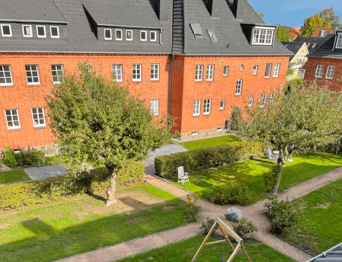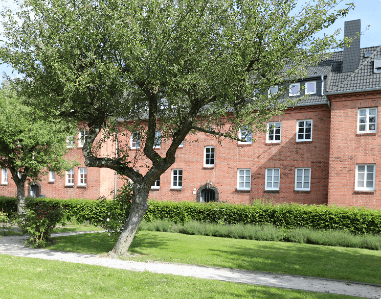 Ein historisch gewachsenes Quartier mit großzügigen Freiflächen im Außenbereich für entspanntes Wohnen.